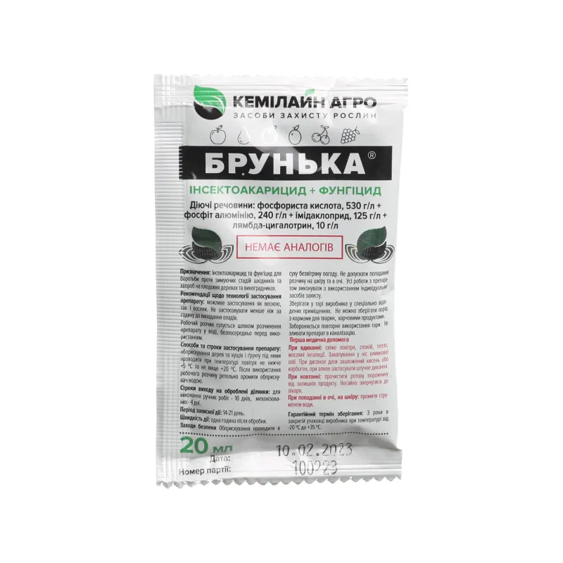 Діюча речовина:Фосфористая кислота 530 г / л, фосфат алюмінію 240 г / л, імідаклоприд 125 г / л, лямбдацігалотрін 10 г / л.
