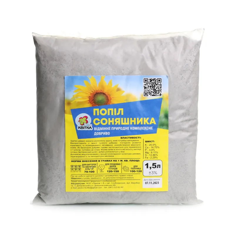 Склад:Фосфор (P), калій (K), магній (Mg), кальцій (Ca) та до 30 корисних елементів.