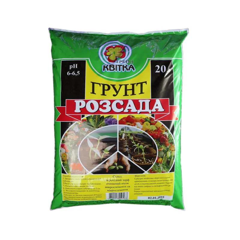 Склад:Субстрат на основі високоякісної суміші верхового та низинного торфу з додаванням необхідних для росту рослин макро- та мікро елементів, річкового піску, перліту та органічних добавок. Кислотність рН: 6,0 - 6,5.