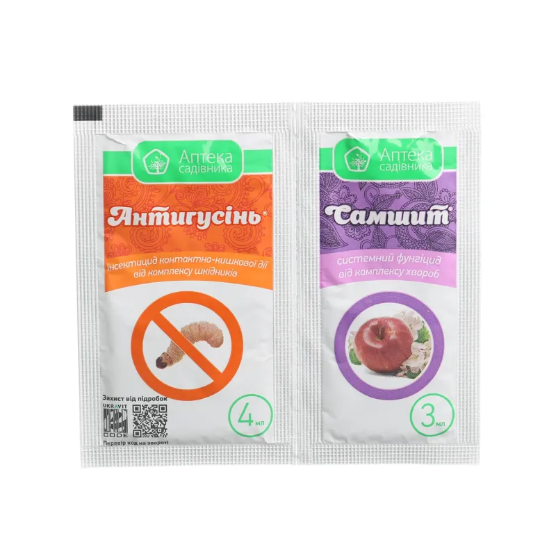 Культура застосування:Плодовые (яблоня), ягодники (смородина, малина, красная смородина), клубника садовая, виноград, роза, декоративные насаждения (листяные породы).