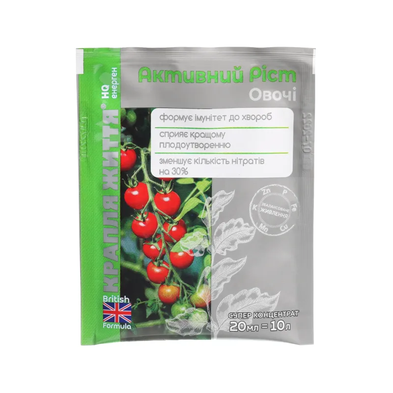 Особливості:Продукт обеспечивает получение высокой урожайности и вкусовых свойств овощной продукции. Не содержит хлора.