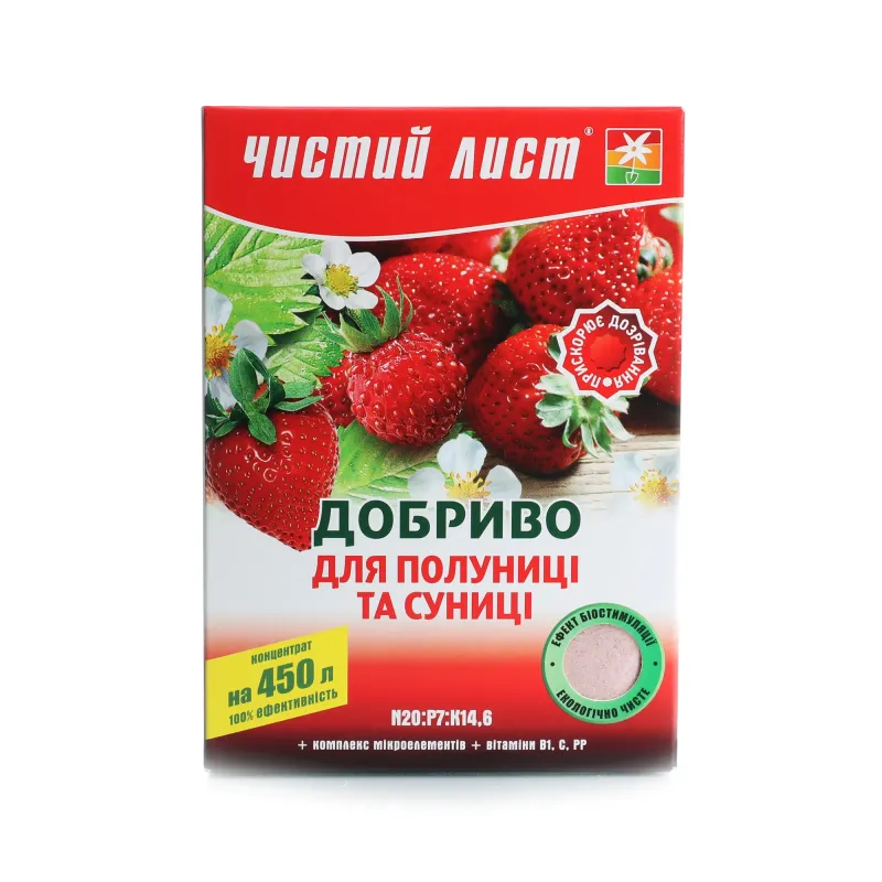 Удобрение кристаллическое для клубники и земляники 300 г Чистый лист